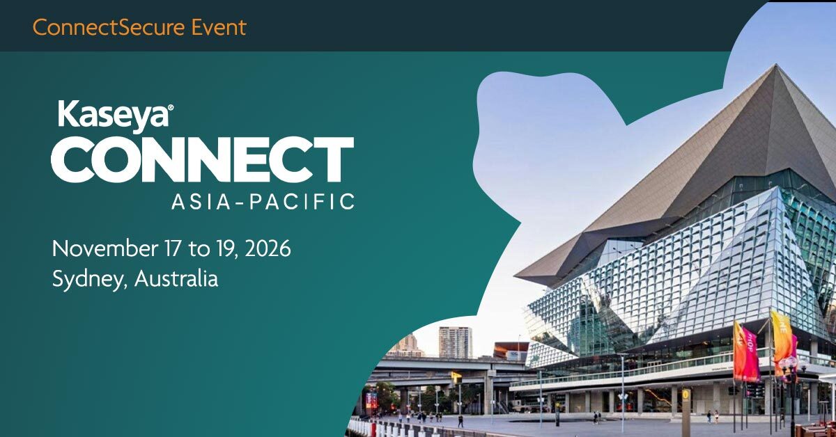 Kaseya Connect Asia Pacific takes place Nov. 17-19, 2026 — and ConnectSecure is set to attend what is touted as the “premier IT event of the year.” Featuring more than 1,000 professionals, hands-on training, and products from top vendors, Kaseya Connect Asia Pacific is designed to help IT companies find the best growth solutions for their needs.